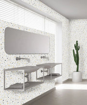 Colours include: Terazzo, New York Loft, New York Grey, Bianco Spino, Grey Slate, and White Cabin.